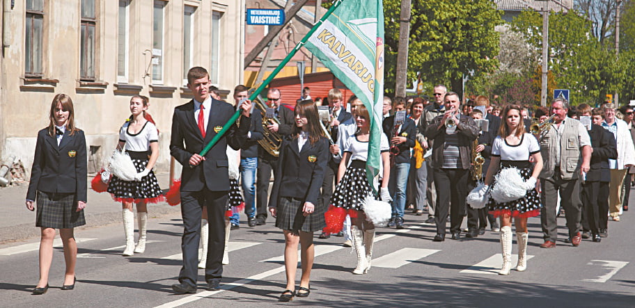 Pasakyta gal ir kiek per skambiai, bet labai arti tiesos – antradienį per Kalvariją į didelę eiseną sustoję pražygiavo visi gimnazijos mokiniai. Kartu ėjo ir mokytojai – šventiškai pasipuošę, gerai nusiteikę, nes taip buvo minima Kalvarijos gimnazijos penkerių metų sukaktis. Priekyje visų ėjo Kalvarijos meno mokyklos pučiamųjų orkestras su šokėjomis, vadovaujamas direktoriaus J.Ciprisevičiaus…