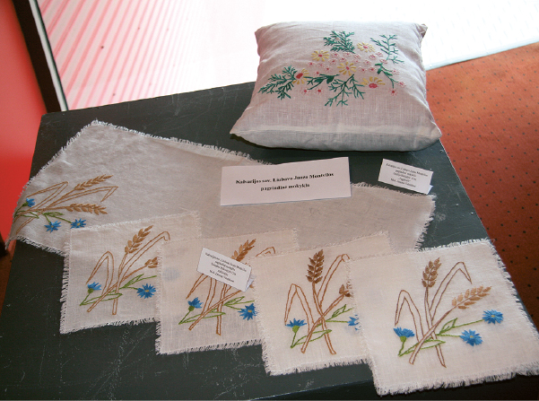Senųjų amatininkų dirbiniai buvo ne tik puošiami tradiciniais raštais, bet ir funkcionalūs, naudojami buityje. Mokinių darbai, pateikti parodoje, atitinka senovines tradicijas: medinės skrynutės, lentelės, šaukštai, mentelės, prieverpstės, prieskoninė, rankšluostinė, gelda, austos ir pintinės juostos, nertos ir siuvinėtos servetėlės, takeliai, staltiesėlės, pagalvėlės, keraminė keptuvė, puodynė, Užgavėnių kaukės, popieriaus karpiniai ir kiti darbai.