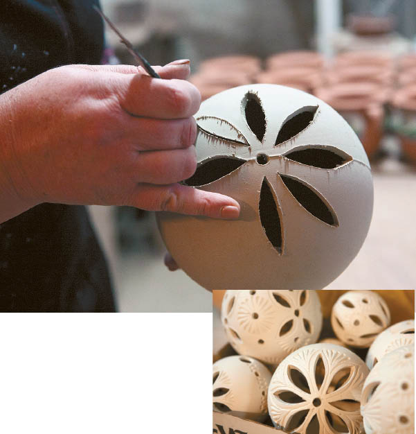 Štai visai neseniai ji pabandė dubenėlius dekoruoti glazūromis. Iki šiol dekoruodavo angobu – (pranc. engobe) – plonu balto arba spalvoto molio sluoksniu (juo dengiamas padžiovinto arba išdegto keramikos dirbinio paviršius. Po to dirbinys dar kartą išdegamas).