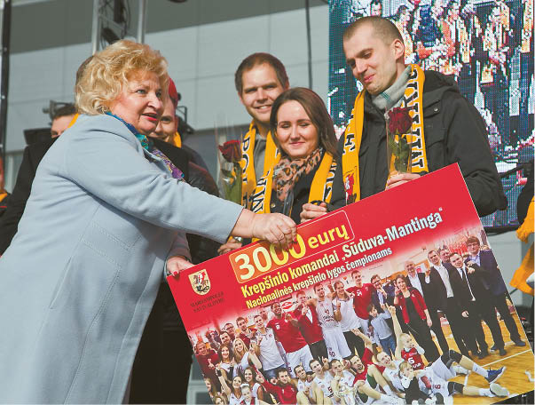 Reprezentacinės Marijampolės moterų ir vyrų krepšinio komandos šalies čempionatų laimėtojos iškilmingai pagerbtos visuomenės J. Basanavičiaus aikštėje surengtoje šventėje. Lydimi pučiamųjų orkestro maršo krepšininkai su iškovotais trofėjais išsirikiavo ant specialiai pastatytos pakylos…