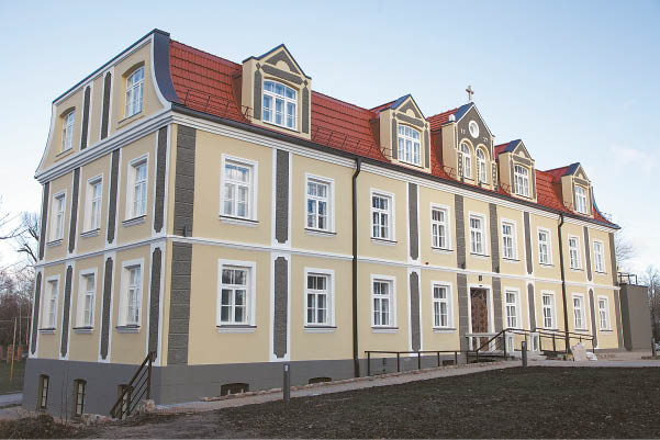 Pastatas buvo erdvus, gražus ir gana modernus, su daugeliu atskirų patalpų, skirtų administracijai, spaudos darbams ir poilsiui. Jį buvo galima pamatyti važiuojant Šešupės tiltu, link Vilkaviškio. Broliai marijonai tame pačiame pastate įkurdino ir biblioteką, ir Marijonų vienuolijos laikraščių redakcijas, trečiajame aukšte – Marijonų noviciatą. Marijonų biblioteka buvo trečia pagal dydį Lietuvoje.