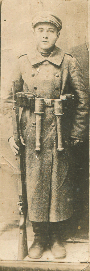 Vienas pulko dalinys, kuriame buvo ir tėvas (10 karininkų ir 50 kareivių), bolševikų puolamas traukėsi iš Alytaus per Simną, Kalvariją į Marijampolę. Iš to meto išlikusi uniformuoto ir ginkluoto tėvo nuotrauka. Sakė, kad nusifotografavo Kalvarijoje atokvėpio valandėlę. Paklaustas, kodėl batai tokie purvini, atsakė, kad ne batus blizginti tada rūpėjo. Juk traukėsi tai pėsti, priešo persekiojami.