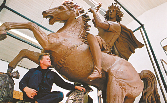 Prie kokio darbo ir kuriais metais skulptorius nufotografuotas? Kur šis darbas yra dabar?