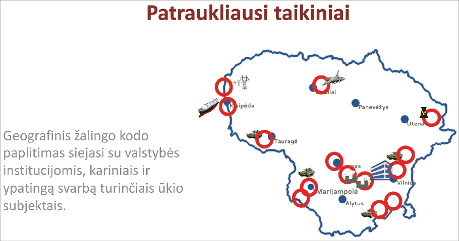 Geografinis žalingo kodo paplitimas siejasi su valstybės institucijomis, kariniais ir ypatingą svarbą turinčiais ūkio subjektais.