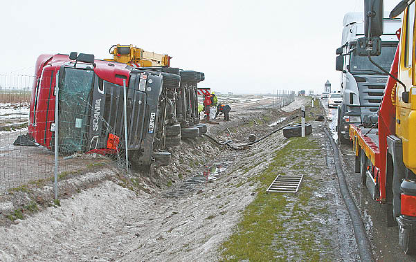 Nuo kelio nuvažiavo vilkikas, gabenęs pavojingą krovinį