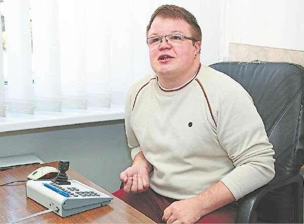 Marijampolietis Eitvydas Daubara vaizdo stebėjimo operatoriumi dirbti pradėjo vos tik buvo įkurta ši pareigybė – prieš 12 metų. Vaikinas turi 40 proc. nedarbingumą. Tai jam nesukliudė baigti inžinerijos krypties studijų Marijampolės kolegijoje, tačiau negalia buvo didžiausias kliuvinys ieškant darbo.