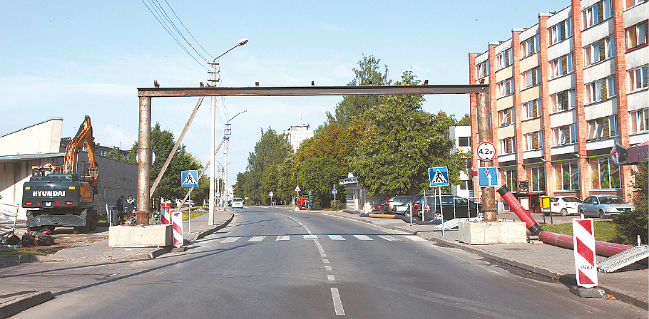 Vietoj aikštelės – žalios vejos klomba, gatvėje – vamzdžių „viadukas“