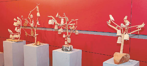 Taigi pamato jis įdomesnę, gražiai išsišakojusią šaką ar nulūžusį medelį, įsodina jį į tvirtą pagrindą, o ant šakų šakelių sutupdo jau savo išdrožtus paukščius – čiulbančius ir skristi pasiruošusius, prikabina varpelių, papuošia žiedais… Viskas ne šiaip sau, kaip sakoma, „iš kepurės“. Atvirkščiai – kiekvienas akcentas turi savo prasmę, tad tie giminės medžiai vis kinta. Gimsta vaikelis – ant medžio šakos nutupia dar vienas paukštis ar suskamba varpelis… Pradžia buvo, kai tuokėsi vaikai – dovanojo tėvai po tokį medį. Gimė porai vaikelis – medis praturtėjo, atsirado proanūkių (jų septynetas) – dar kitoks patapo… Reikia gerai įsižiūrėti į tuos smulkius elementus šiose kompozicijose, nes ten įamžintos ir datos, ir vardai, užfiksuota tos šeimos istorija… Padėdama rinkti eksponatus šiai parodai pono Kazimiero dukra Nijolė Kubilienė apvažiavo gimines – ir ne tik, nes ne vien Gyvybės medžiai, bet ir daugybė kitų daiktų išsisklaidę plačiai.