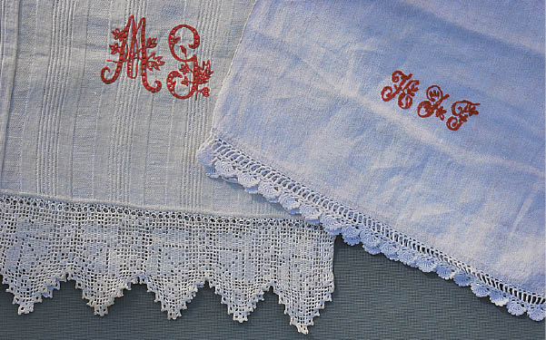 XX a. 6–8 dešimtmečiais labai išpopuliarėjo vąšeliu dažniausiai iš baltų medvilninių siūlų nerti mezginiai, dažnai išmezgant žodžius: „Ką myliu, tam dovanoju“, „Labas rytas“ ir kt. Visuose Lietuvos regionuose labai paplitęs puošimo būdas – inicialų, monogramų siuvinėjimas rankšluosčio gale. Dažniausia tai buvo daroma raudonais medvilniniais siūlais kryželiu. Siuvinėjami inicialai žmogaus, kuriam dovanojamas rankšluostis. Kartais prie raidžių išsiuvinėjamas ir skaičius – taip buvo numeruojami kraitiniai audiniai. Muziejaus fonduose yra keletas tokių sunumeruotų rankšluosčių. Tarp rankšluosčių su monogramomis vieną saugome ypatingą – tai kunigo, istoriko, visuomenės veikėjo Jono Totoraičio asmeninis rankšluostis.