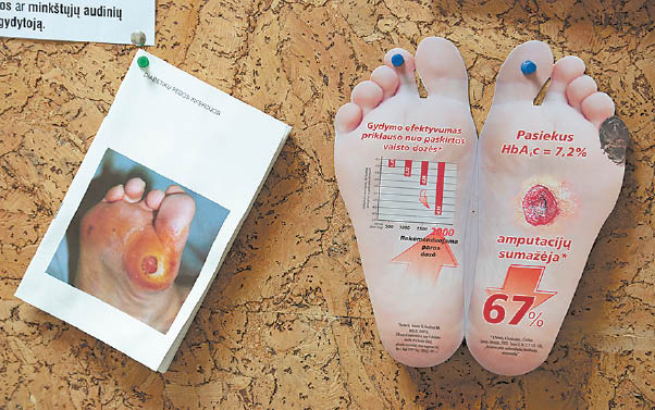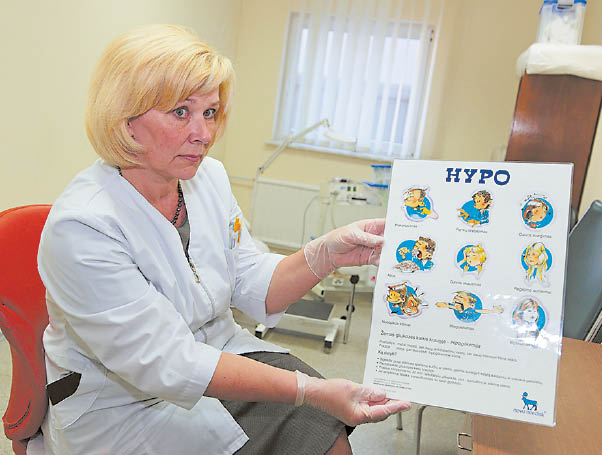 – Suaugusius ligonius (vaikų nekonsultuojame) pas mus pirminei konsultacijai nukreipia gydytojas endokrinologas arba šeimos gydytojas. Galimybe pasinaudoti pirmine konsultacija pacientas gali daugiausia penkis kartus per metus, tęstine (jai nukreipia tik šeimos gydytojas) – dukart. Pirminės konsultacijos metu su pacientu mokomės, kaip taisyklingai leistis insuliną, kaip nustatyti gliukozės kiekį kraujyje, atpažinti hipoglikemiją ir hiperglikemiją, ketonuriją ir imtis priemonių joms pašalinti, susipažįstame su angliavandeniais ir mokomės apskaičiuoti jų kiekį maiste. Dar viena svarbi konsultacija – kaip prižiūrėti kojas. Su tęstinių konsultacijų pacientais, daugiausia tais, kuriems po tablečių vartojimo paskiriamas insulinas, taip pat mokomės skaičiuoti angliavandenius, atpažinti pojūčius, kai gliukozės kiekis kraujyje iškyla arba nukrenta, – pasakoja D. Lelkienė.