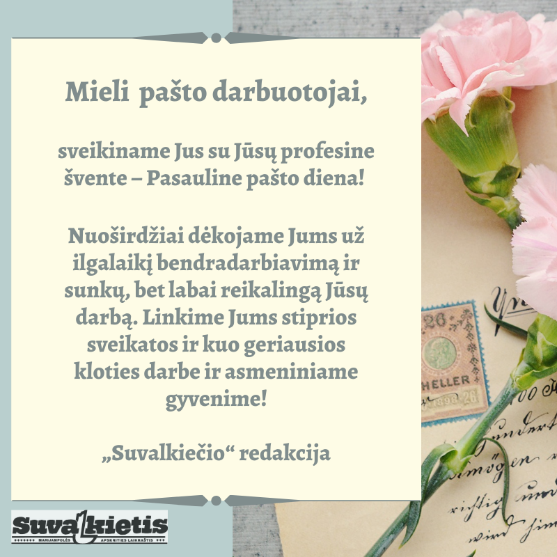 Spalio 9 dieną minima Pasaulinė pašto diena "Suvalkiečio" inf. Spa 9, 2020 Dalintis mokejimai.suvalkietis.lt reklama