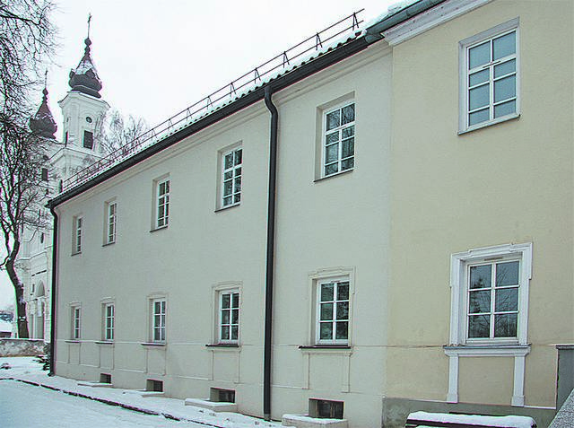 Nepaisant statybų Šv. arkangelo Mykolo bažnyčia 1821 m. jau veikė. Priešais ją stovėjo senukų prieglauda – špitolė. Greta – vienaukštis kun. Viktoro Volungevičiaus 1799 m. užbaigtas mūryti vienuolynas. Be abejo, tai didžiausias mūrinis miesto pastatas iki pat XX amžiaus. Vienuolyno kompleksą, be gyvenamojo mūro su vidiniu kiemu (ir įvairiais patogumais: virtuve, didžiule valgykla, geru šildymu olandiškomis krosnelėmis, požemine kanalizacija), sudarė daugybė erdvių ūkinių medinių pastatų – vadinamasis palivarkas. 1827 metais jis jau buvo mūrinis. Prie upės nuo neatmenamų laikų stovėjo marijonų bravoras. Kadangi grafienės Pranciškos Butlerienės 1758 m. privilegija draudė jurisdikoje statyti smukles ir liepė išlaikyti špitolę, o 1759 m. karaliaus Augusto III privilegija leido užsiimti propinacija (tai išskirtinė teisė gaminti svaigalus – red.), marijonai surado kompromisinę išeitį – savo gryną ruginukę šinkavo špitolės pastate (jį padalinę į dvi dalis). Tiesa, saikingai, kasmet prisidurdami vos 3–4 šimtus auksinų įplaukų. 1818 m. vienuolyno pajamos buvo 2588 auksinai, išlaidos – 1079; grynasis pelnas – 1509 auksinai – didesnis, nei viso Marijampolės miesto surenkamas biudžetas. Kažkur netoli špitolės veikė parapinė mokykla. Vadovaujama mokytojo pono Jurevičiaus, ji mokė per 100 jaunikaičių.