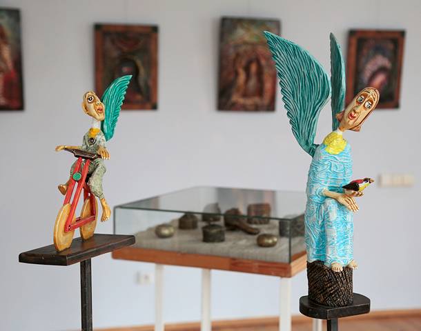 Tačiau mes, nesiklausydami ir nekreipdami dėmesio į nieką, tiesiog apsižvalgykime tik ką pradėjusioje veikti (po ilgo laiko, dar vis po karantino skėčiu, bet jau lankomoje!) parodoje „Saulėračio“ galerijoje (Vytauto g. 31) Marijampolės krašto ir Prezidento Kazio Griniaus muziejuje. Ekspozicija taip ir pavadinta: „Septynetas kūrėjų iš Marijampolės“.