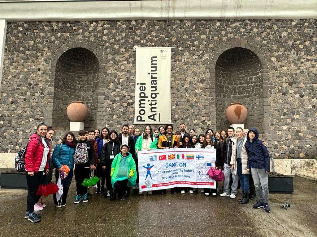 Lapkričio 13–19 dienomis įgyvendindami paraiškoje numatytas veiklas ir tikslus atvykome į Istituto Comprensivo Statale Di Alvignano mokyklą Italijoje. Susipažinome su Viduržemio jūros regiono mitybos ypatumais, su partnerių šalių mitybos įvairove. Kalvarijos gimnazijos mokinės pristatė savo šalį, miestą, parengė išsamius tradicinių valgių receptus: papasakojo, kaip gaminti cepelinus, žemaičių blynus, bulvių plokštainį ir šaltibarščius. Lankydami projekto partnerius Italijoje, turėjome daugybę progų pažinti šalies kultūrinį-istorinį paveldą Kazertoje, Pompėjoje bei Romoje.