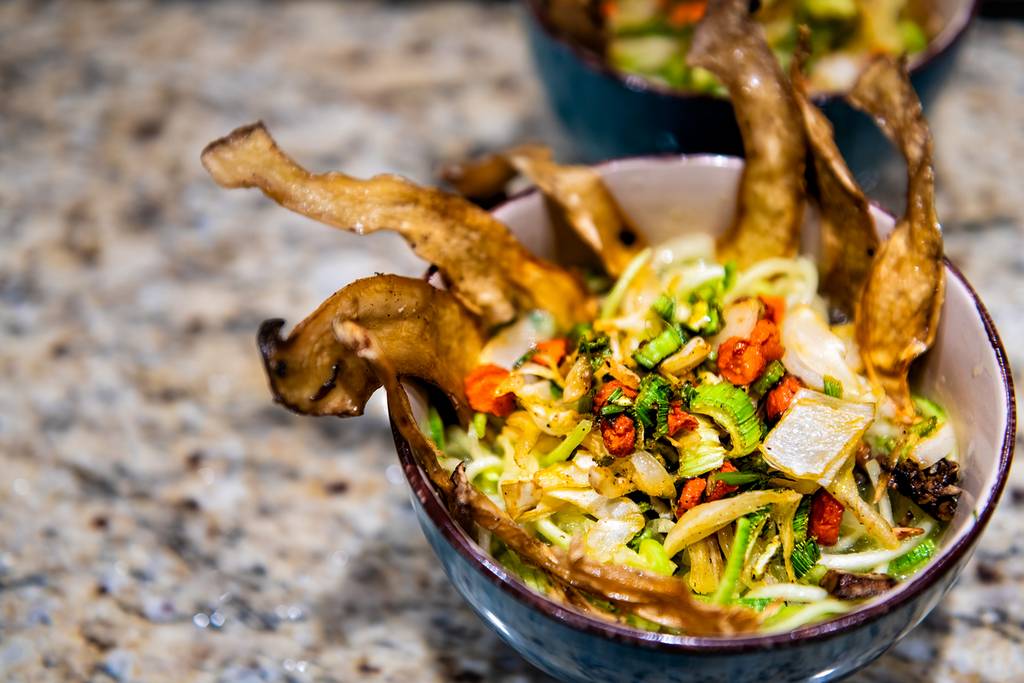 „Nupjaukite grybų kotelius, bet jų neišmeskite – jie puikiai tiks sriuboje, sultinyje, troškinyje ar kitame vėliau ruošiamame patiekale. Šitakių kepurėles supjaustykite maždaug 0,5-0,6 cm storio juostelėmis. Apliekite jas alyvuogių aliejaus, sodų padažo bei druskos mišiniu ir leiskite pastovėti apie 5 minutes. Kepkite jas keptuvėje su įkaitintu aliejumi ant vidutinės ugnies arba iki 180 laipsnių įkaitintoje orkaitėje, skardoje su kepimo popieriumi. Ir ten, ir ten prireiks maždaug 10 minučių, kad šitakiai taptų traškūs. Jeigu norite dar ryškesnio skonio, labiau paskrudinkite“, – apie gamybą pasakoja G. Urbonavičiūtė.