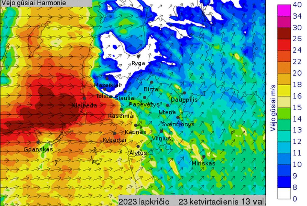 Regione vėjo gūsiai sustiprės iki 30 m/s