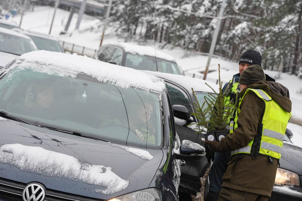 Miškininkai kartu su policijos pareigūnais vairuotojams dovanos kalėdinius medelius