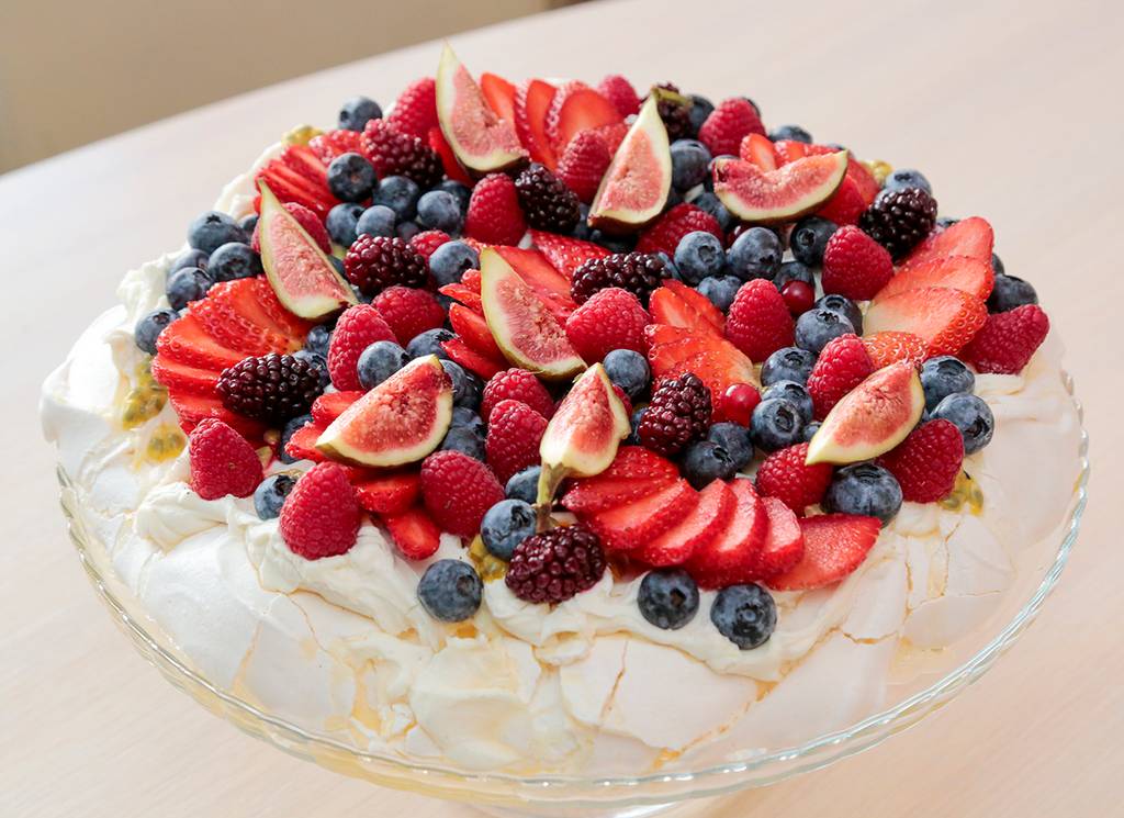 - Kremą sudėti ant iškepto morengo, tada pagal fantaziją papuošti uogomis. Vualia! Desertas pagamintas!