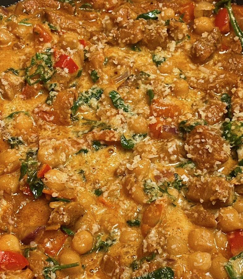 Nėra labai svarbu, kiek gramų vištienos ar avinžirnių reikės šiam troškiniui – bandykime, skanaukime ir tikrai pavyks!
