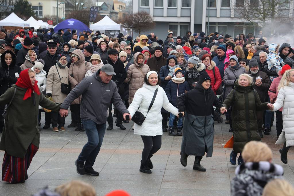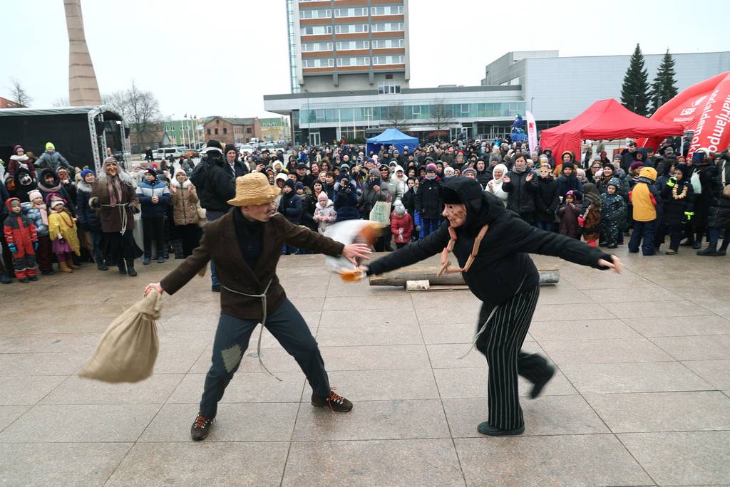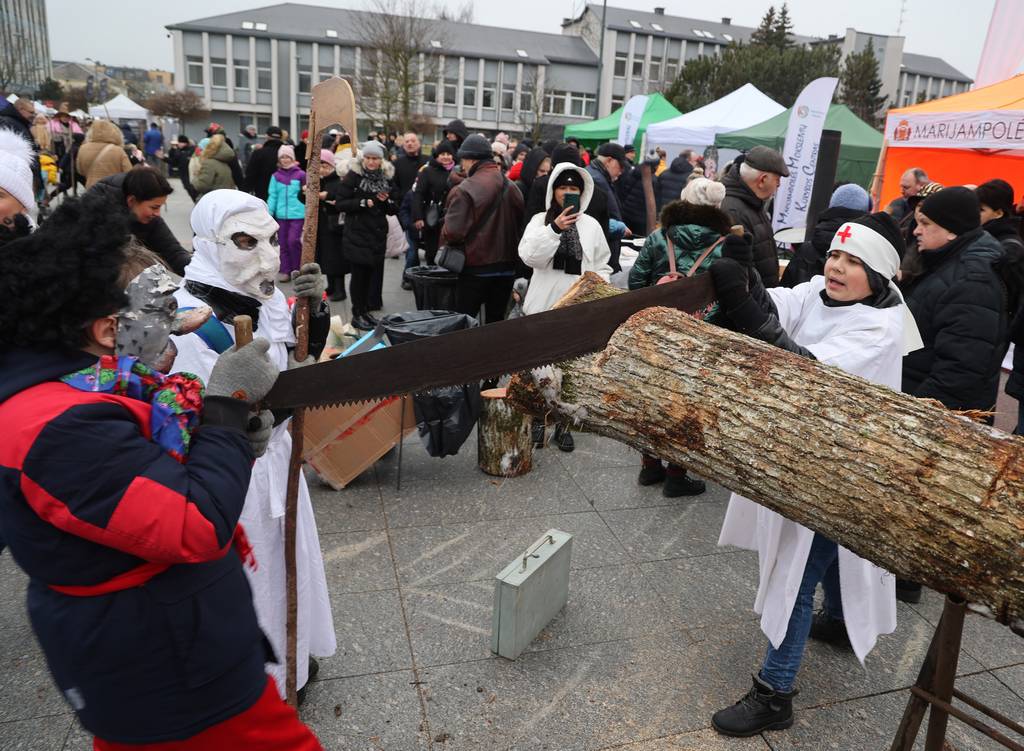 Bet, tradicijų reikia laikytis, nes, sako, jei tam tikrą dieną nedarysi to, kas nuo seno priklauso, visus metus vaikščiosi it pinigą pametęs ir nežinosi, kas su tavimi darosi. Tad praėjusį sekmadienį (be sniego, bet ir be lietaus) marijampoliečiai buvo kviesti į pagrindinę miesto aikštę idant papročius prisimintų ir pasilinksmintų. Nuo pat ryto suvažiavo prekeiviai, gardumynų ir gražių daiktų siūlydami įsigyti (mugė šįkart buvo gausi), aikštės pakraštyje įsitaisė tie, kurie ketino atrakcionus, varžybas organizuoti (Moksleivių kūrybos centras, Profesinio rengimo centras) – ir tokių smagybių buvo prigalvoję, kad ne tik vaikus, bet ir augius vyrus traukė: kad ir perpjauti ąžuolinį rąstą.