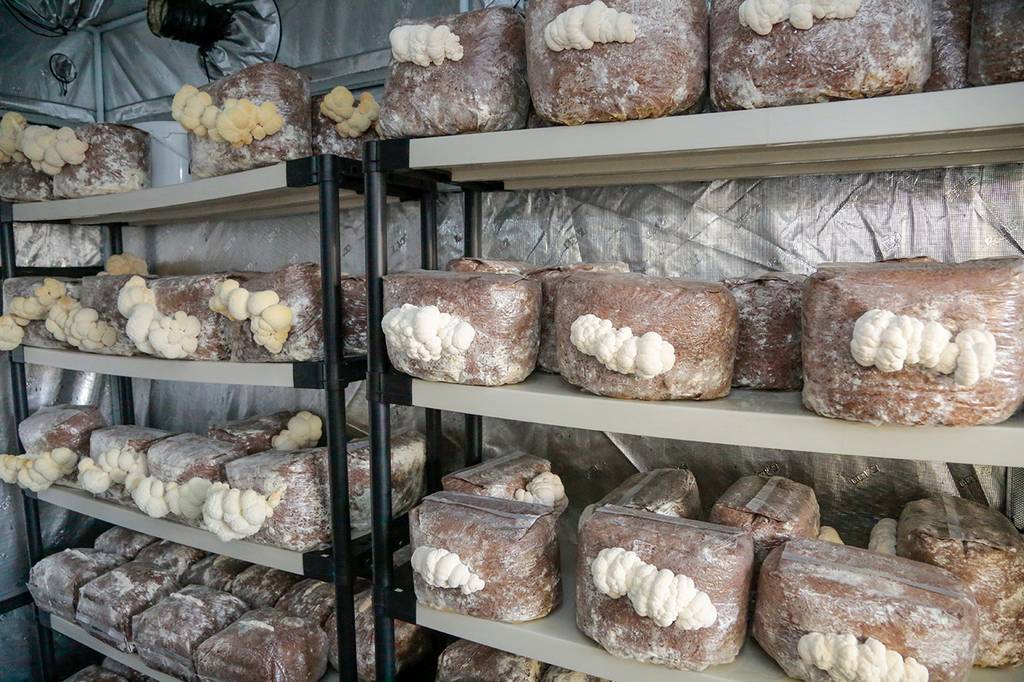 Su vaikinais kalbėjomės ir grybų derlių apžiūrėjome „fermoje“ Trakiškių kaime. Nors žodis „ferma“ labai sąlyginis: aplinka čia labiau primena laboratoriją: šaldytuvas, švirkštai su grybienos turiniu (nuo grybienos įsigijimo ir prasidėjo verslas), laboratorinės petri lėkštelės, du autoklavai, kuriuose garais sterilizuojami grūdai bei specialūs maišai su pjuvenomis, laminarinė spinta, nupučianti bet kokius teršalus, inkubacinė palapinė, dar viena palapinė, kurioje auga grybai ir kt.