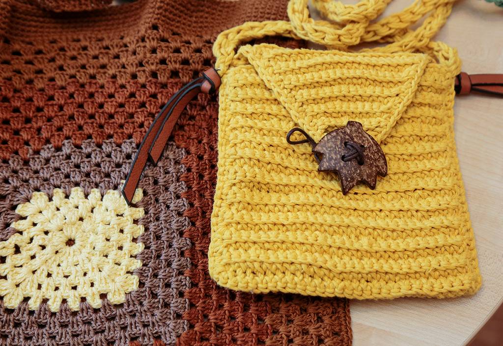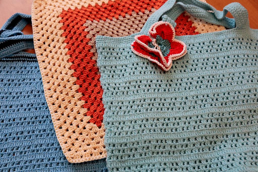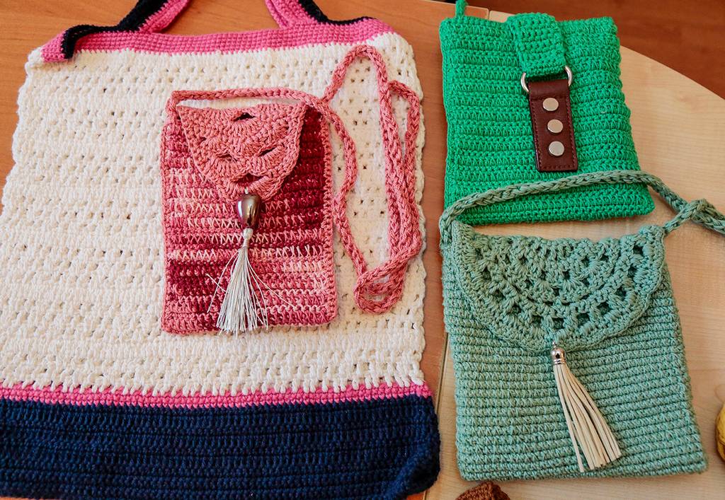Į didžiuosius krepšius ji specialiai neįsiuvo pamušalo – kiek į krepšį dėsi, tiek tilps. Mažosios „terbelės“ – su pamušalu, nes be jo, pasak mezgėjos, raktų ryšelis ar telefonas negražiai nutęstų mezginį žemyn.