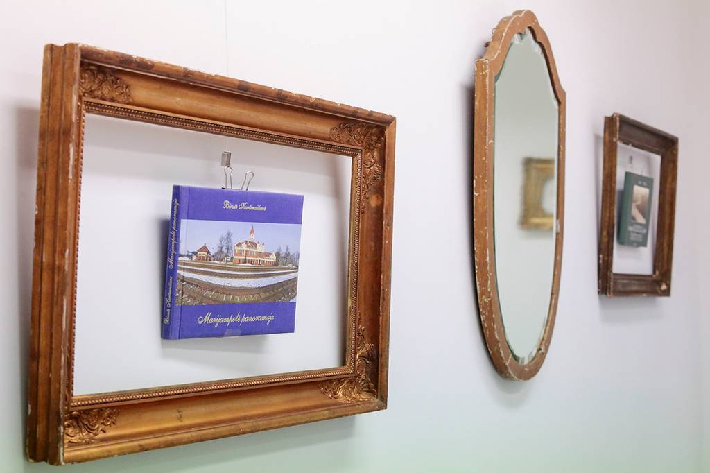 Kai marijampolietis menininkas Vytautas Jukna pasiūlė eksponuoti savo originalią rėmelių, veidrodžių kolekciją, kilo mintis, kad tuose rėmeliuose galėtume pristatyti mūsų bibliotekoje esančias knygas apie Marijampolę, kurių pavadinime yra miesto vardas, – „Suvalkiečiui“ papasakojo bibliotekos kultūrinės veiklos vadybininkė Daiva Bepirštienė.