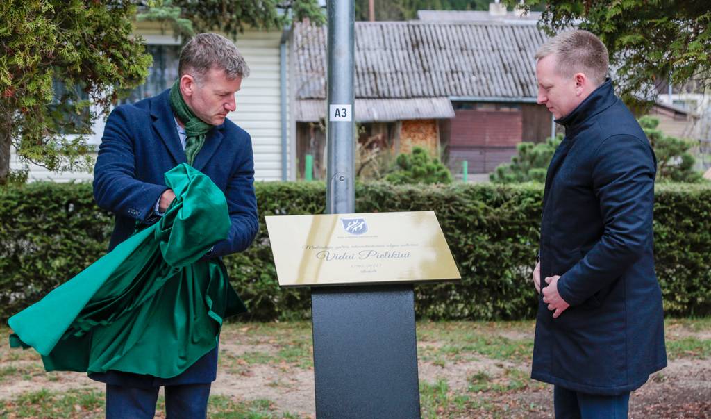 Simboliška, kad atminimo lentelę V. Pielikiui atidengė Marijampolės ir Kazlų Rūdos savivaldybių merai P. Isoda ir M. Varaška. Šviesus velionio atminimas buvo pagerbtas tylos minute.