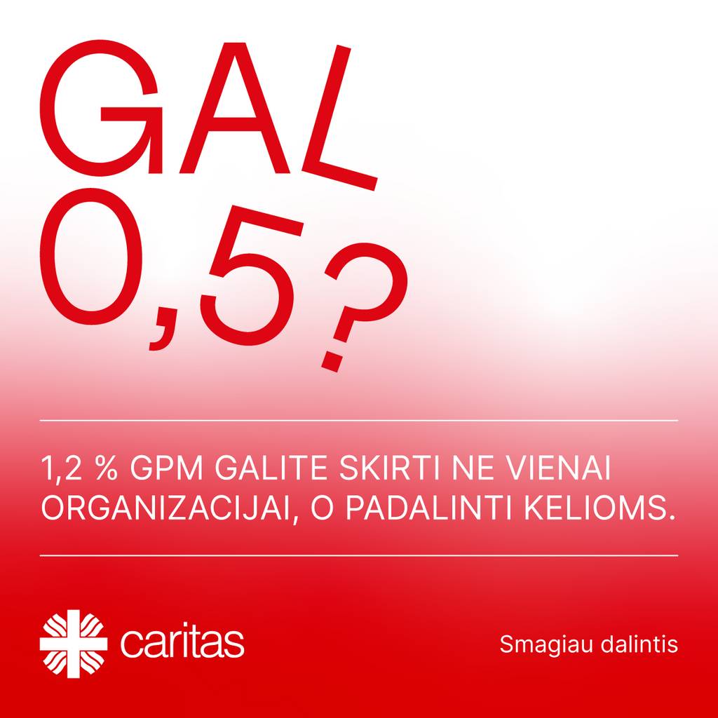 Dėkodama visiems, kurie kasmet skiria savo GPM vienai ar padalina kelioms organizacijoms, Lietuvos Carito vadovė kviečia savo aplinkoje rasti bent po 5 žmones iš tų 77 proc. neskiriančiųjų GPM dalies ir padėti paskirti paramą, kuri nekainuoja: „Geri pavyzdžiai užkrečia, be to, kaip sako Caritas, – smagiau dalintis“.