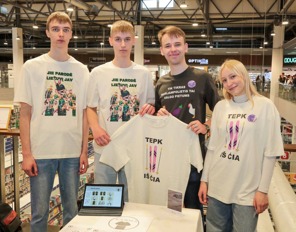 Marijampolės Sūduvos gimnazijos gimnazistai komisiją ir būsimus pirkėjus „ėmė“ humoru. Ant marškinėlių besipuikuojantys humoristiniai užrašai – unikalūs, pačių sugalvoti.