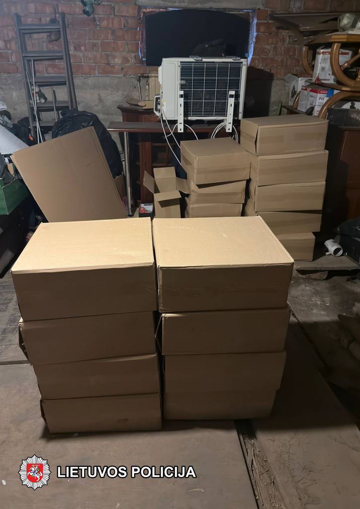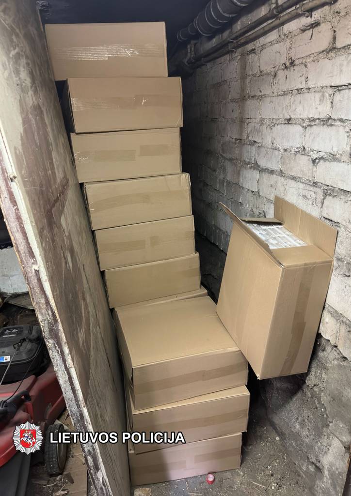 Marijampolės apskrities vyriausiojo policijos komisariato pareigūnai operacijos metu aptiko 95 dėžes kontrabandinių cigarečių.