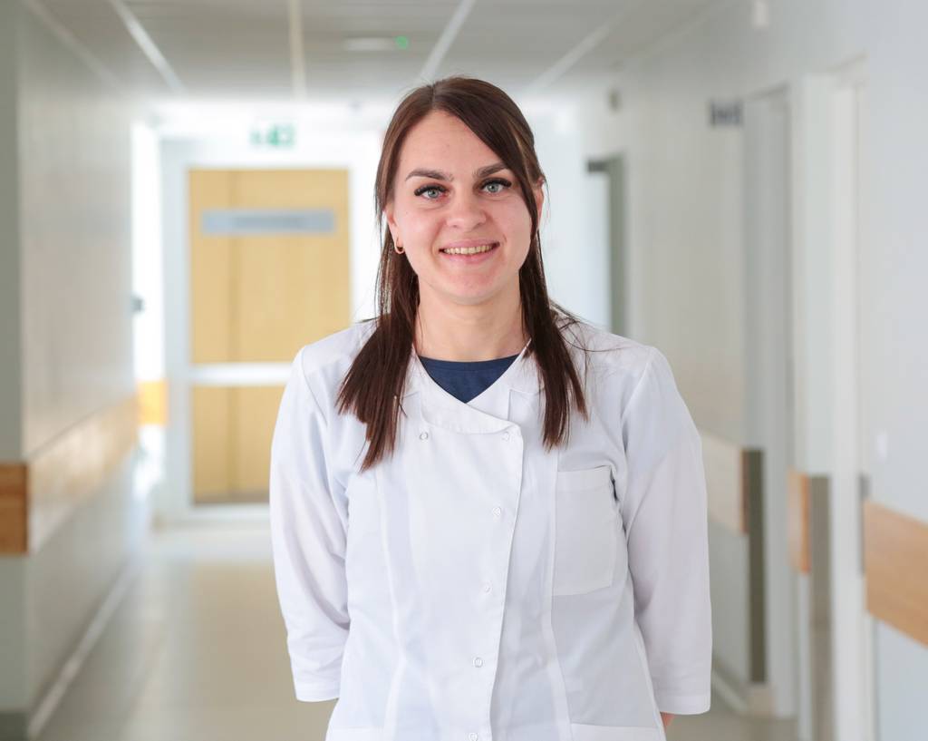 Bendrosios praktikos slaugytoja Aistė Avulienė Marijampolės ligoninės Geriatrijos skyriaus vyresniąja slaugos administratore dirba nuo pat skyriaus darbo pradžios – 2023-ųjų liepos. Aistė džiaugiasi ne tik sėkmingu skyriaus darbu, bet ir pasirinkta specialybe.