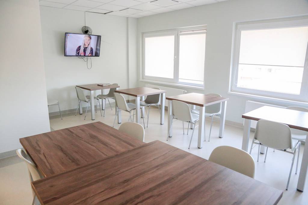 Aistė mano, kad tokia aplinka ligoninėje – didelis privalumas. Juk ne veltui sakoma, kad ir sienos gydo. Į skyrių patenka išvarginti ligų, iškamuoti skausmų pacientai, tad jaukumas, patogumas irgi prisideda prie jų sveikimo, geresnės nuotaikos. Žmonėms, ypač tiems, kurie dažnai būna vieni, svarbus ir bendravimas tarpusavyje. Tai taip pat savotiška terapija. Štai jaukioje valgykloje pakabintas televizorius, atskiri staliukai, jeigu nori, gali išsivirti kavos, arbatos, pabendrauti tarpusavyje. Lyg lankytumeisi kavinėje. „Pastebėjome, kad tik atvykę pacientai norėdavo, kad valgį jiems atneštų į palatą, bet apsilankę valgyklėlėje, jau pageidauja valgyti ten“, – pasakojo Aistė.