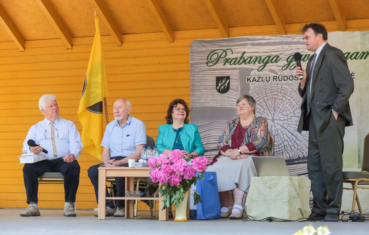 – 2024-ieji, gegužės 24-oji. Prisiminkite šią datą. Ir ne todėl, kad prieš jus yra garbūs žmonės, profesūra: profesorius, mokslų daktaras Libertas Klimka, mokslų daktarė Aldona Vasiliauskienė, profesorius, mokslų daktaras Juozas Banionis, profesorė, mokslų daktarė Vilija Grincevičienė. Mes čia susirinkome visiems mums svarbiu klausimu, – sakė kraštietis, gamtininkas, Kazlų Rūdos garbės pilietis Selemonas Paltanavičius, moderavęs konferenciją ir pristatęs diskusijos pranešėjus.