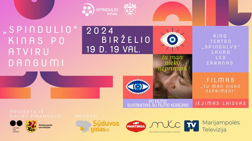 Projektą „Spindulio“ kinas po atviru dangumi“ iš dalies finansavo Lietuvos kino centras prie Kultūros ministerijos ir Marijampolės savivaldybė. Renginio rėmėjai: viešoji įstaiga „Marijampolės televizija“, naujienų portalas „Sūduvos gidas“, UAB „Mantinga“, Marijampolės kultūros centras. Daugiau informacijos apie renginį rasite www.spinduliokinas.lt puslapyje, kino teatro „Spindulys“ „Facebook“ bei „Instagram“ paskyrose, vietinėje spaudoje, televizijoje.