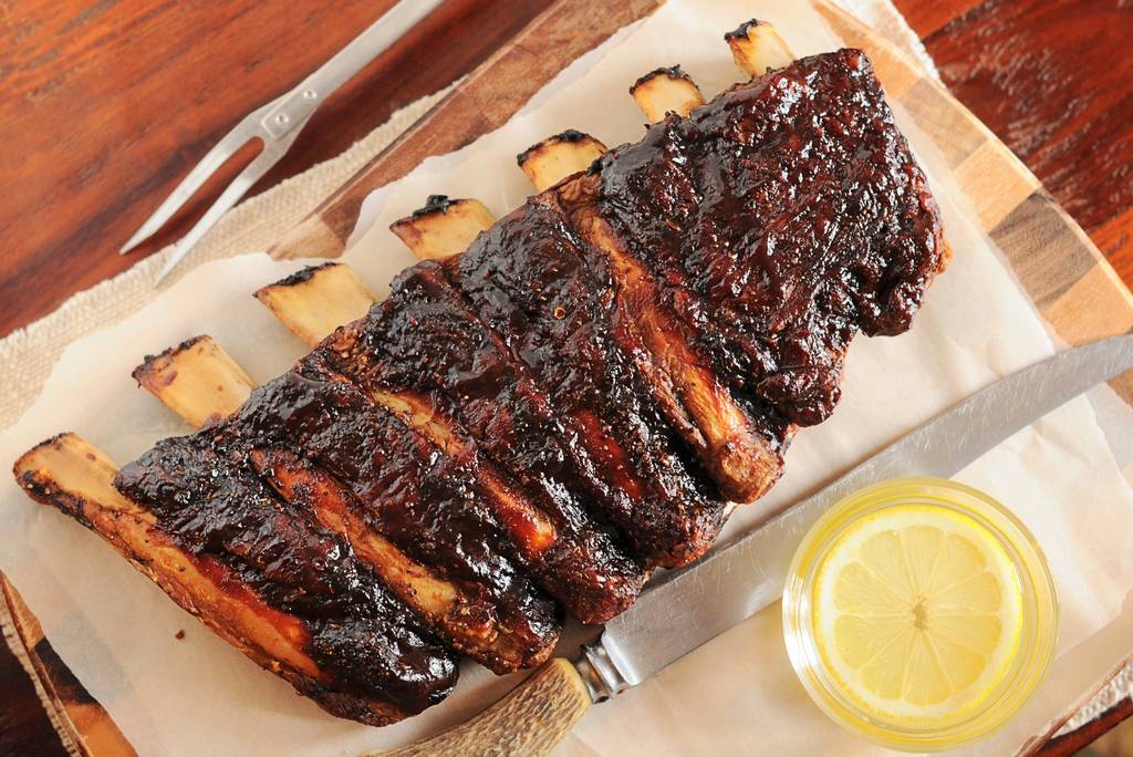 Grilyje kepti kiaulienos šonkauliai su barbekiu padažu