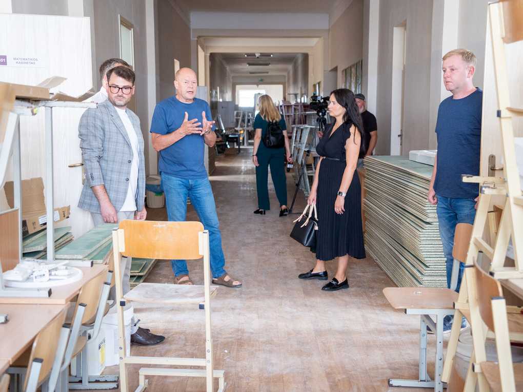 Rygiškių Jono ir Sūduvos gimnazijose bei Jono Totoraičio ir „Šaltinio“ progimnazijose vykstančius patalpų remonto darbus apžiūrėti vyko Marijampolės savivaldybės vicemerė Agnė Pavelčikienė, Savivaldybės administracijos Švietimo kultūros ir sporto skyriaus vedėjas Nerijus Mašalaitis.