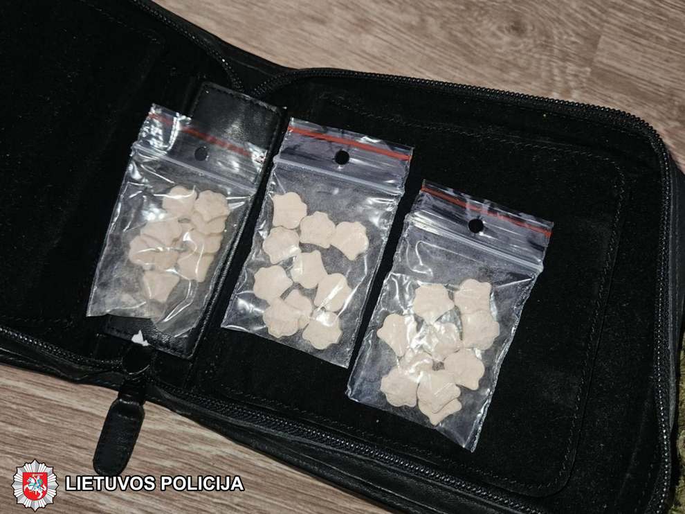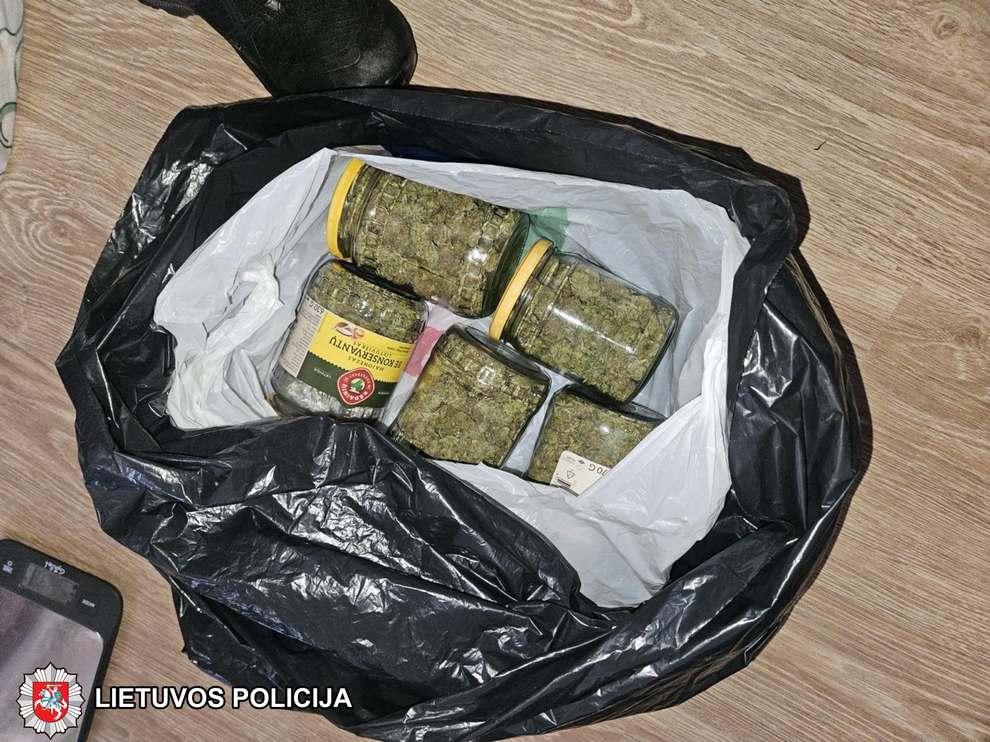 Pareigūnai rado platinti paruoštos narkotinės medžiagos – kelis stiklainius su kanapėmis ir tris paketėlius su psichotropinėmis MDMA (metilenedioksimetafetaminas) tabletėmis, kitaip vadinamu ekstazi.