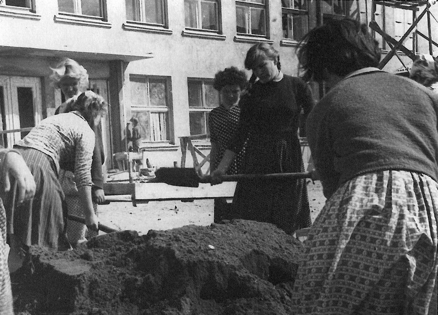 1954–1957 metais mokyklai vadovavo Marija Aguonienė. Ji ypatingą dėmesį kreipė mokinių veiklai po pamokų. Dar vienas tikrai įdomus faktas. 1959 metais prie mokyklos įsteigta pavyzdinė veislinė triušių ferma. Jos darbui vadovavo mokytojas M. Kriaučiūnas. 1962 m. miesto valdžios sprendimu mokyklai paskiriamas 0,48 ha pagalbinis žemės sklypas. Šiame sklype buvo įrengta 40 inspektų langų. Buvo auginami ankstyvieji kopūstai, pomidorai. Taip pat užveistas sodas. Mokiniai mokėsi žemdirbystės ir sodininkystės pradmenų.