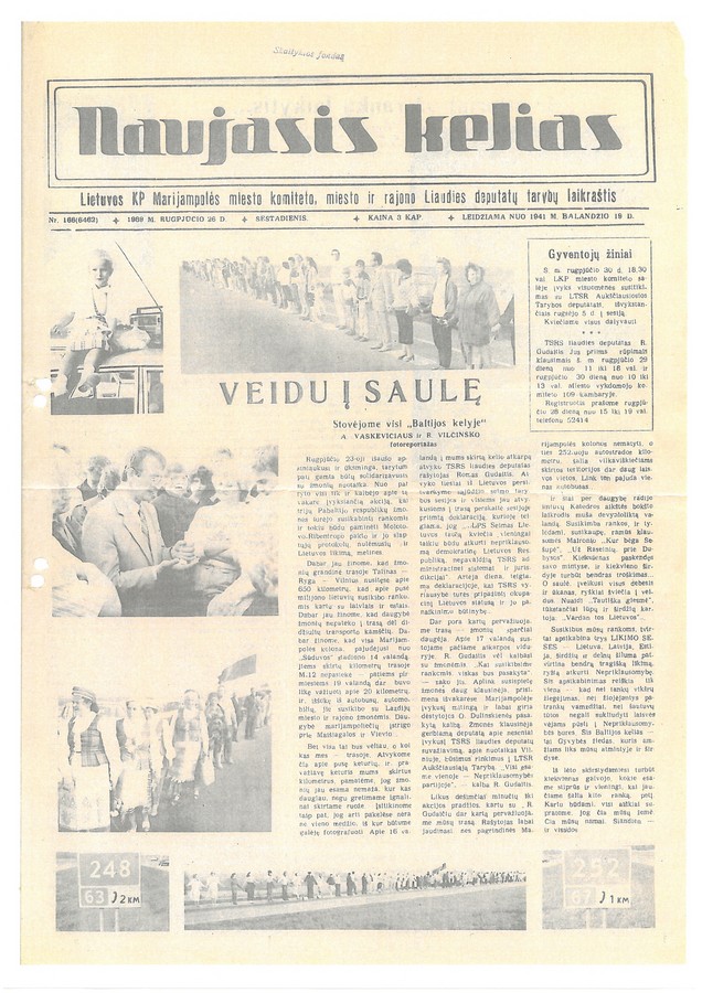 Šių eilučių autoriui tada teko dirbti dar „Naujuoju keliu“ besivadinusiame „Suvalkiečio“ laikraštyje ir kartu su marijampoliečiais dalyvauti „Baltijos kelyje“. Archyvuose pavyko surasti laikraščio numerį, kurio pirmajame puslapyje buvo išspausdintas reportažas, pavadintas „Veidu į saulę“. Tad tegul kalba istorija.
