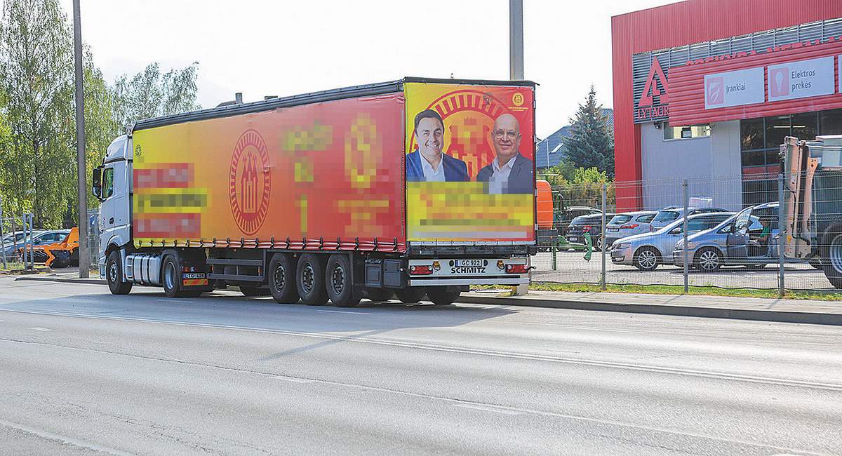 Krovininis sunkvežimis su Petro Gražulio veidu Marijampolės gatvėse pykdo vairuotojus