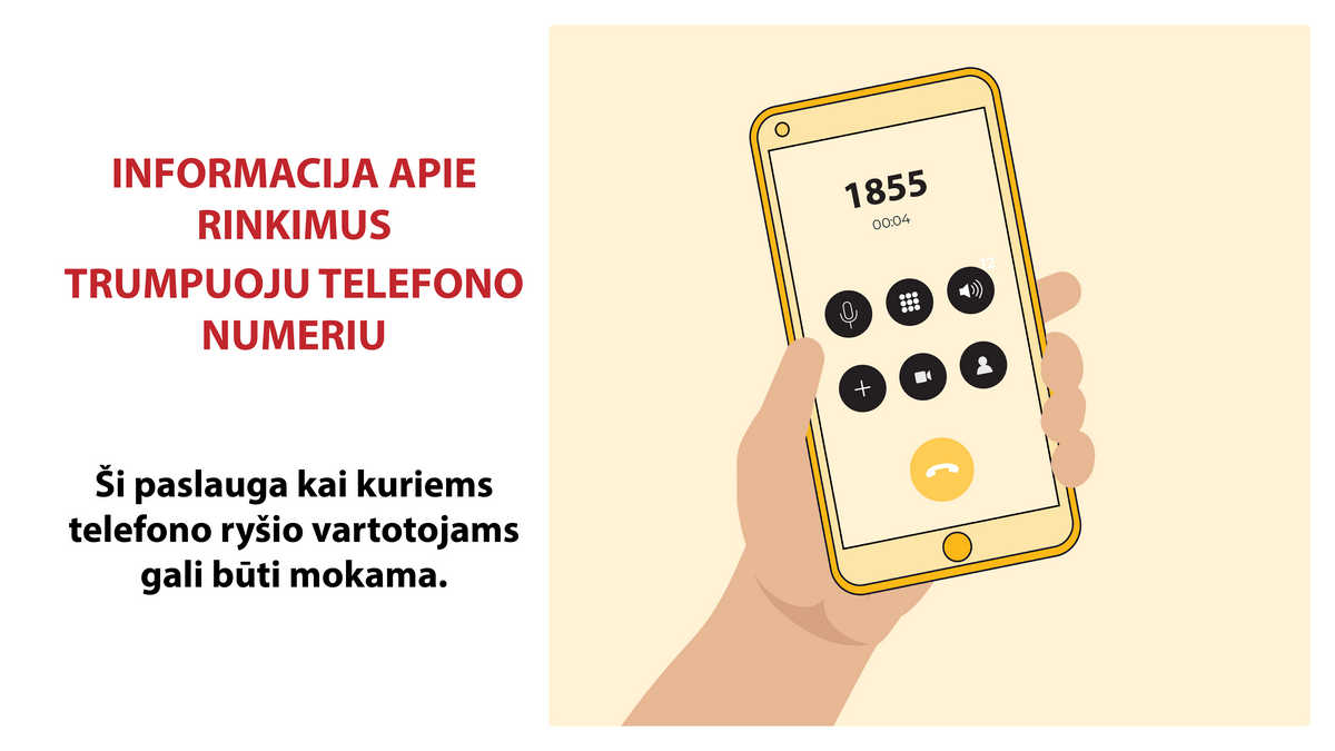 Vyriausioji rinkimų komisija (VRK) informuoja, kad šiandien pradeda veikti trumpasis numeris 1855, kuriuo rinkėjams bus teikiama informacija apie rinkimus.