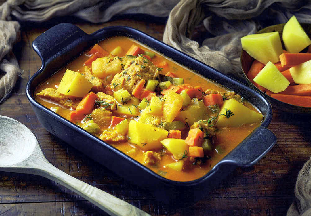 Mėsą apkepu aliejuje, druskos ir pipirų dedu pagal skonį. Apkepusi mėsą sudedu griežinėliais supjaustytas morkas ir svogūnus, įpilu truputį vandens. Viską patroškinu ir sukrečiu į puodą, įpilu sultinio, kad apsemtų ir troškinu, kol morkos pradės minkštėti. Tada suberiu stambiomis juostelėmis supjaustytas bulves.