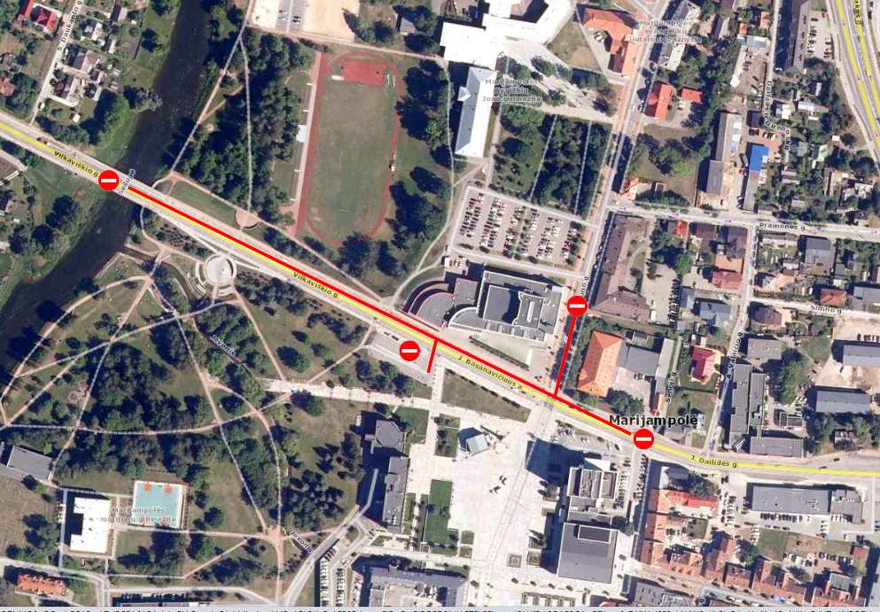 Nuo spalio 5 d. 6.30 val. iki 19 val. transporto priemonių eismas bus draudžiamas Vilkaviškio g. atkarpoje nuo tilto per Šešupės upę iki įvažiavimo į viešbutį ,,Mercure Marijampolė“ ir Kauno g. akligatvyje nuo įvažiavimo į Kultūros centro automobilių stovėjimo aikštelę iki Vilkaviškio g.