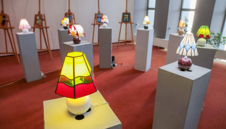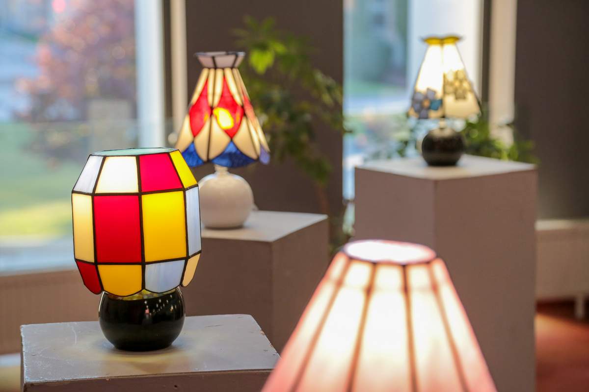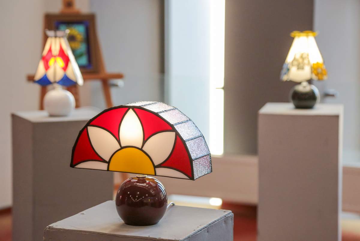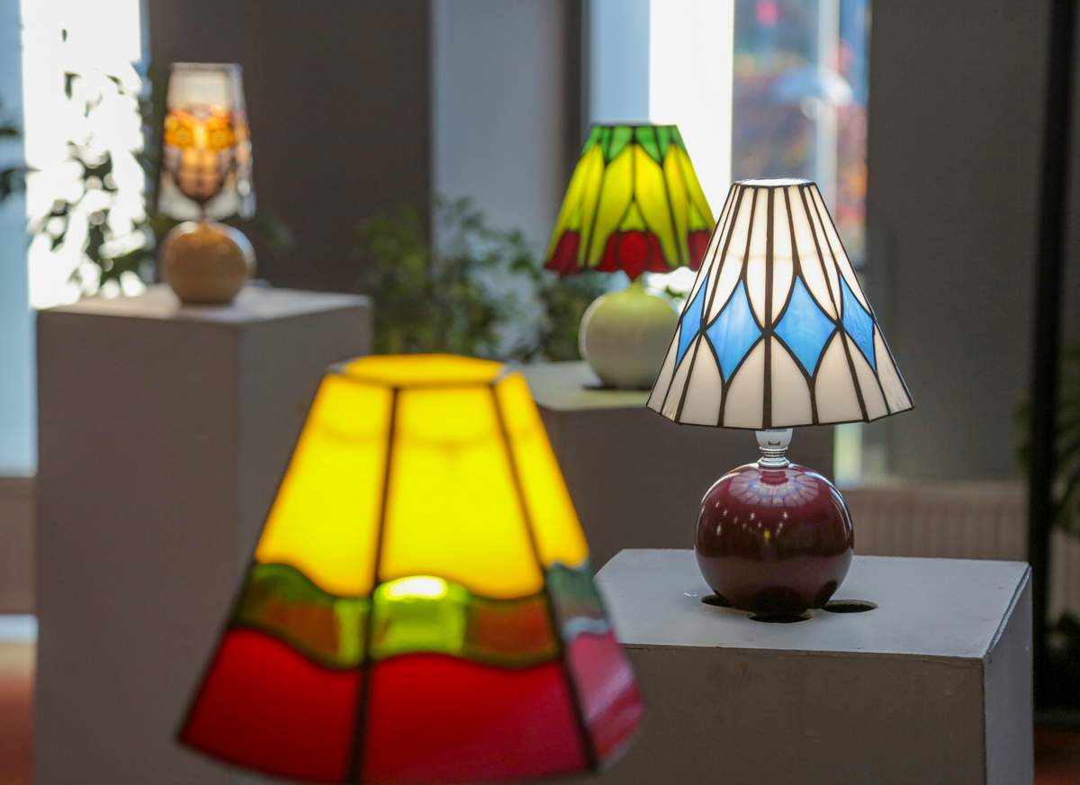 Toks įspūdis iš neseniai atidarytos Romo Šapoko stiklo darbų parodos „Vitražiniai šviestuvai“. Tai – nebe pirma marijampoliečio kūrybos paroda, kai kurie darbai besidomintiems gal ir matyti, bet kiekvieną sykį ekspozicija naujoje erdvėje keri netikėtumu ir naujumu. Šį kartą pavadinimas jau pasako, kas pagrindinis akcentas. Šviestuvai – arba stalinės lempos, kaip esame įpratę vadinti, visi iš tikrųjų šviečiantys bei savo įvairiaspalvių gaubtų ornamentais kuriantys savitą erdvę aplink ir vis kitokią nuotaiką tarp jų bevaikštant. Tiek jų vienoje vietoje – pirmą kartą. Ekspozicijoje taip pat ir medžiu apkraštuoti plokštieji vitražai – kompozicijos su paukščiais, kaukės…