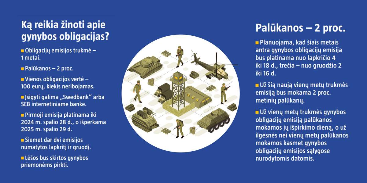 Naujos emisijos planuojamos nuo lapkričio 4 iki 18 d. bei nuo gruodžio 2 iki 16 d. www.gynybosfondas.lt
