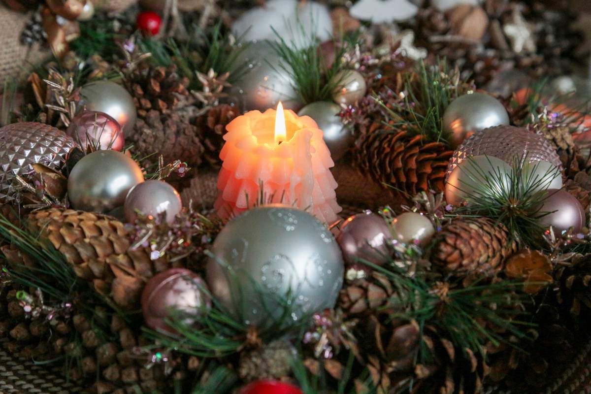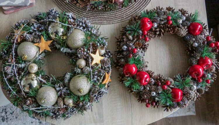 Kur kas daugiau laiko ir kruopštumo prireikia gaminant kalėdinį vainiką. Pirmieji buvo retesni, su mažiau elementų, dabartiniai – gausūs, turtingi. Pradžioje gamino iš daug daug laikraščių, kad būtų tvirti ir iškilūs. Dabar pagrindą daro iš kartono: iškerpa ratą, suklijuoja kelis jo sluoksnius, apvynioja lipnia juosta, audiniu. Ant jo karštais klijais klijuoja puošybos detales: pačios surinktas ir pirktas. Vasarą sode, miške, lauke moteris prisirenka samanų, kerpių, eglės, pušies, kedro, kėnio kankorėžių, juos išdžiovina, švariai išvalo. Šiemet vainiką puošė ir graikiniais riešutais – visais, ne tik kevalais. Jai taip gražiau. O kad žiemos pasaka būtų balta ir blizgi, kankorėžius apipurškia baltais dažais arba laku.
