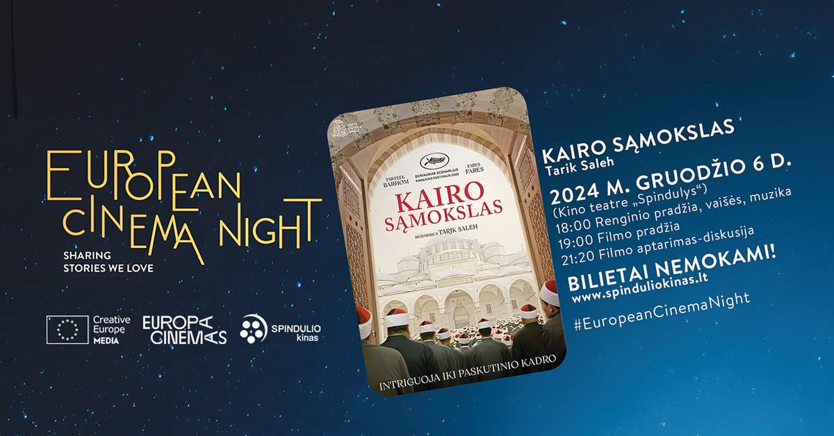 Europos kino naktys, kurių metu nemokamai bus rodomi europietiški filmai, visose Europos Sąjungos šalyse vyks gruodžio 2–6 dienomis. Marijampolėje gruodžio 6-ąją šis nemokamas renginys prasidės 18 val. vaišėmis ir Dominyko Vakrino grojama muzika, vėliau po pasveikinimo žodžio visi galės pažiūrėti filmą, kuriam pasibaigus vyks filmo aptarimas ir diskusija su mokslininke, islamo tyrėja, gide, filmo “Kairo sąmokslas” vertėja Ina Kiseliova-El Marassy.
