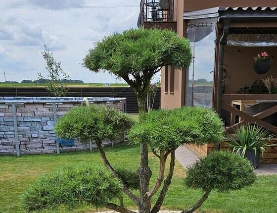 Prieš ir po. Formuota pušis (Niwaki). Nuotraukos iš Aivaro Sakalausko albumo.
