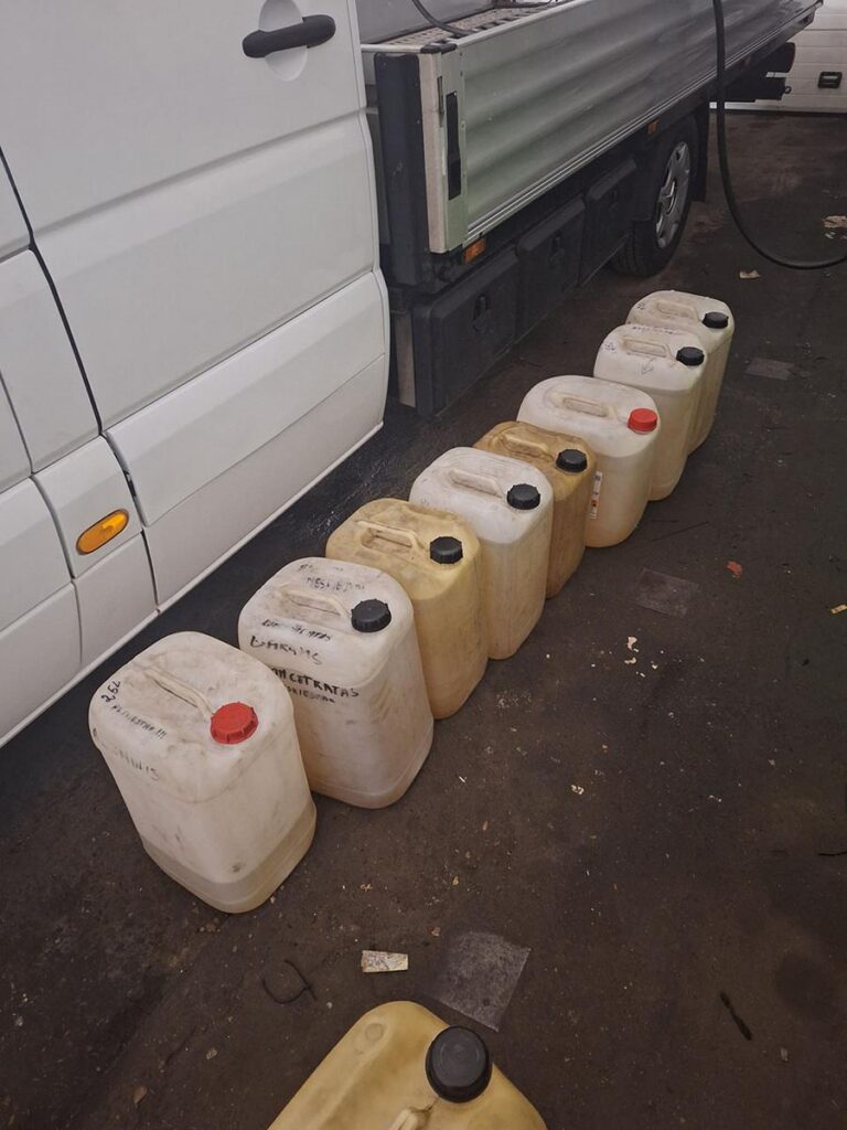Anot MKT, Jurbarke pirmadienio (vasario 10 d.) vakarą patruliavusiems MKT pareigūnams apie 23 val. įtarimų sukėlė Rusijoje registruotas vilkikas su puspriekabe. Priėjus prie mašinos, pastebėta, kad į automobilio kuro baką įdėta žarna, o dyzelinas siurbliu pumpuojamas į gretimo pastato viduje esančias talpas. Minėtų patalpų viduje užklupti du asmenys – vilkiką vairavęs Rusijos pilietis ir Lietuvos pilietis, Jurbarko gyventojas. Pastate buvusiose talpose aptikta 4 000 litrų dyzelino.